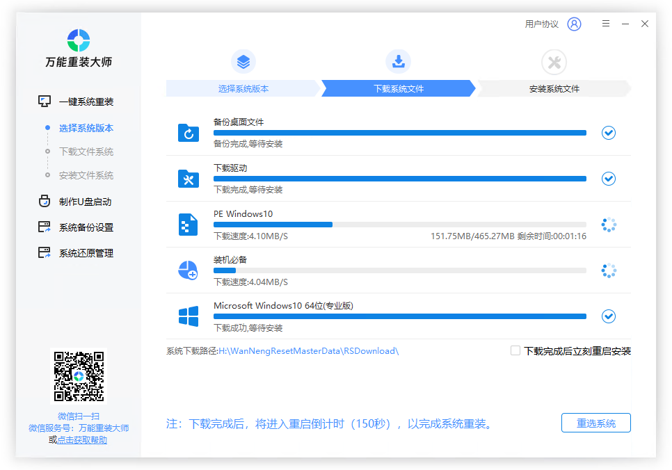 6.5您请注意并您应认可:使用本软件"一键重装"功能时,为保障下载的系统文件完整性,防止误操作导致文件删除而重下,故下载界面右上角的 "关闭" 按钮实际作用为"最小化"(其他界面保持不变)。